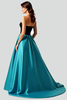 Black Peacock Blue A Line Ball Gown Long Satin Prom Dress