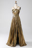Fuchsia A-Line Spaghetti Straps Pleated Prom Dress with Slit