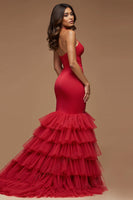 Dark Red Mermaid Keyhole Tulle Long Prom Dress with Slit