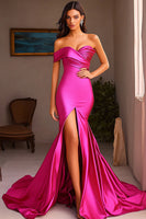 Fuchsia One Shoulder Ruched Long Mermaid Prom Dress with Slit
