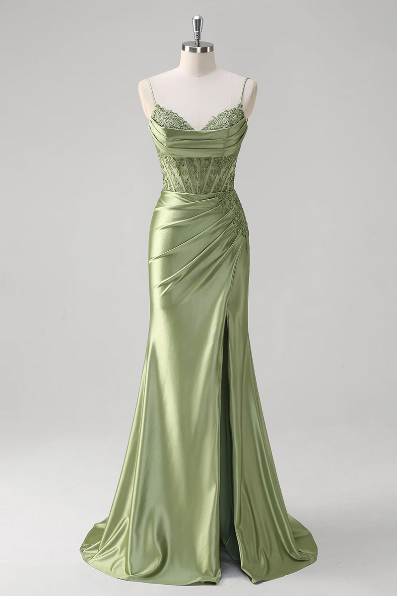 Feature: This stunning long dress features a sparkly pattern with delicate satin accents and a corset-inspired design. Adorned with intricate appliques, it adds a touch of glamour, while the spaghetti straps offer a chic, feminine look. The emerald green hue enhances its sophistication, making it perfect for special occasions.