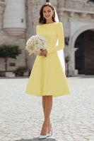 Features: This ivory satin A-line short dress features a classic round neckline and elegant long sleeves, creating a refined and graceful bridal look. The satin fabric provides a flattering structure while keeping the dress comfortable and easy to move in. The short length adds a touch of freshness and modern charm, making it perfect for pre-wedding occasions. Designed to combine simplicity with timeless elegance, it’s an ideal choice for brides seeking effortless sophistication.