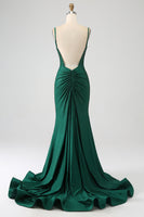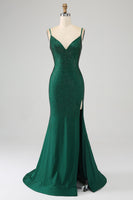 Sparkly Dark Green Beaded Long Mermaid Prom Dress with Slit