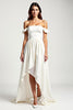 White Off the Shoulder A Line Chiffon High Low Graduation Dress