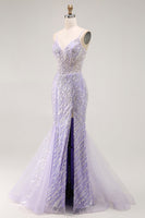 Sparkly Purple Sequins Mermaid Long Corset Prom Dress with Slit